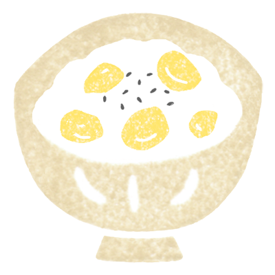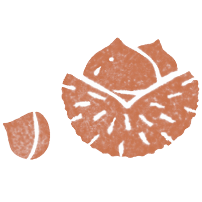 いが付きの栗(1色で版画仕上げ)と栗ごはんのイラスト