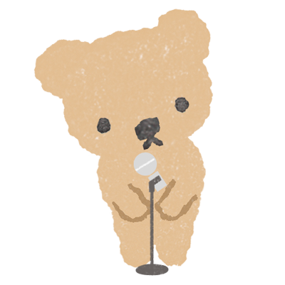 【フリー素材ずーあん】のスタンドマイクの前で歌うくまの無料イラスト