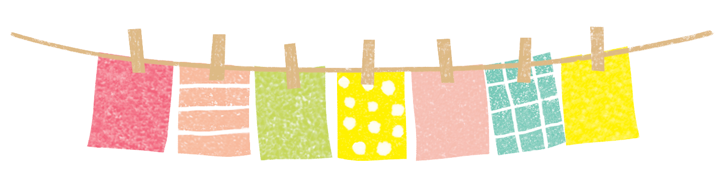 7枚の四角いフラッグを木製ピンチで挟んだガーランドの無料イラスト