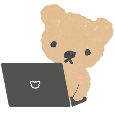 文字無-パソコンに向かっているくせっ毛くまの無料イラスト