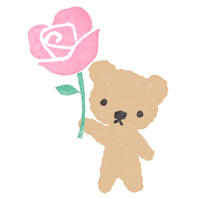 プレゼントに添えるカードとしていかがでしょうか。シンプルにバラだけのイラストとクマがバラを持ったイラストと2バージョンあります